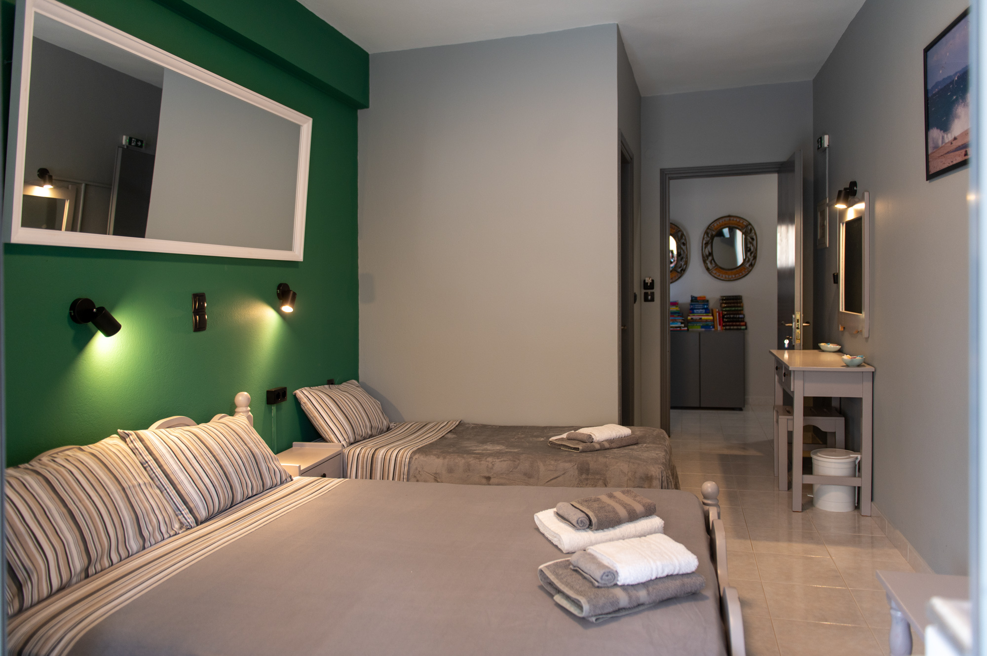 Διπλό κρεβάτι + ένα μονό κρεβάτι και καναπές κρεβάτι