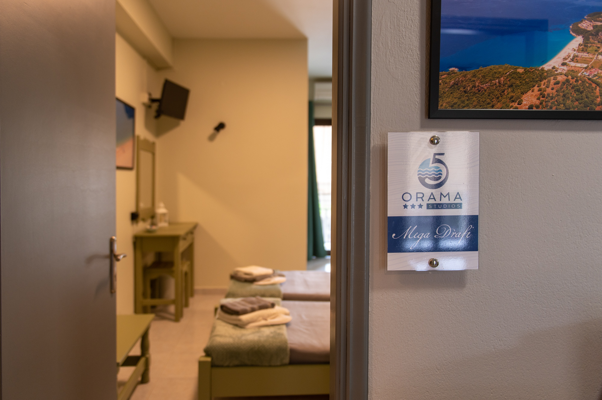 Το Orama Studios αποτελείται από 5 ξεχωριστά ενοικιαζόμενα δωμάτια, εμπνευσμένα από τις πιο γνωστές παραλίες της περιοχής: Αγία Παρασκευή, Καραβοστάσι, Αρίλλας,Μέγα Ντράφι και Σταυρολιμένας.